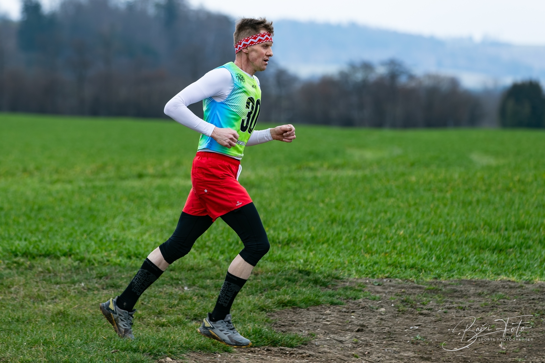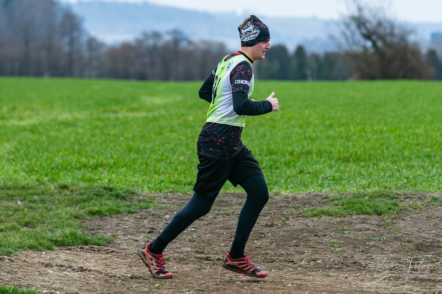 V terénu jsem se soustředil hlavně na technické pasáže a změny tempa, kde vznikají vizuálně nejsilnější momenty. Klíčové je předvídat – číst stopu, náběh do zatáčky nebo reakci běžce na profil tratě.